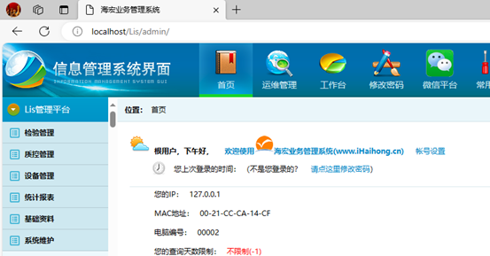 网页版系统,在检验科外查询管理方便。